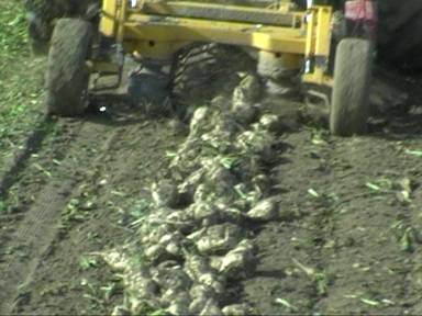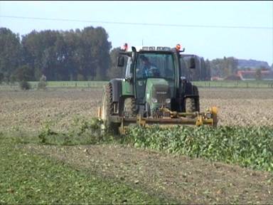 Pour la découpe du champs, Dominique insiste sur le fait que le déport de l'endain de betteraves est fait tout en roulant.