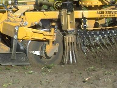 Le disque du milieu a une particularité : une griffe-rateau qui permet de ne laisser aucune butte à l'arrière de l'arracheuse.
