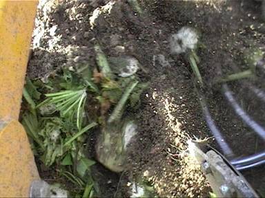 on arrive au bout du champs, l'arracheuse dévoile ses soleils une fois levée.